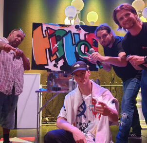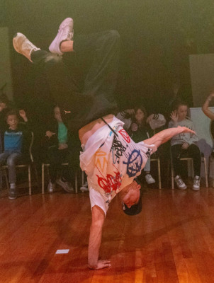 De voorstelling Hip-Hop History bestaat uit raps, dans, live graffiti spuiten en vette beats van de DJ. In zo’n 30 minuten krijgt het publiek een beeld van hoe deze cultuur zich heeft ontwikkeld tot wat het nu is.