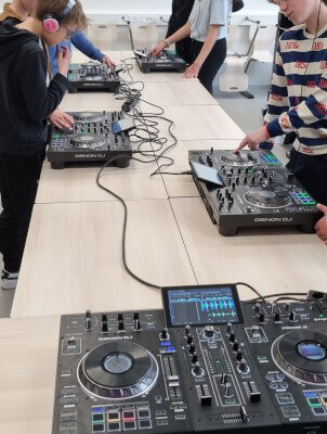 Daarbij is Air Drumming een workshop die je met de hele groep gezamenlijk beleeft. In de andere elektronische workshops wordt er in duo’s gewerkt met koptelefoons op. Daarbij zul je dus iets minder teamspirit kweken. Al kun je de workshop wel afsluiten door aan elkaar te presenteren.