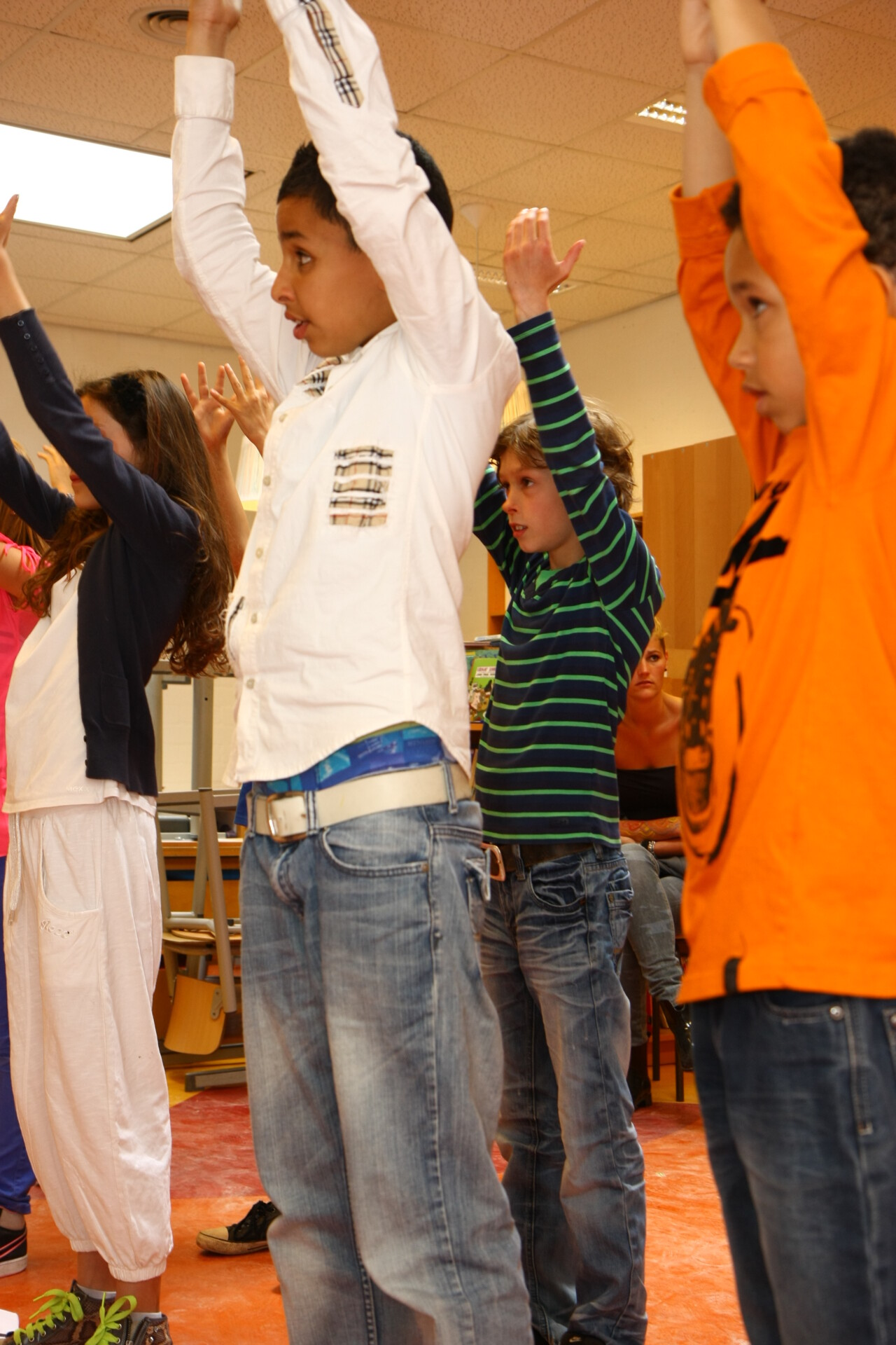 - De enthousiaste workshopleider geeft de leerlingen goede handvatten om tot spelen te komen.