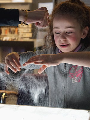 Dag 4: Zandkunst Workshops; Afrikaanse taferelen, dieren en korte verhalen in beeld brengen met zandtekeningen op lichtbakken.