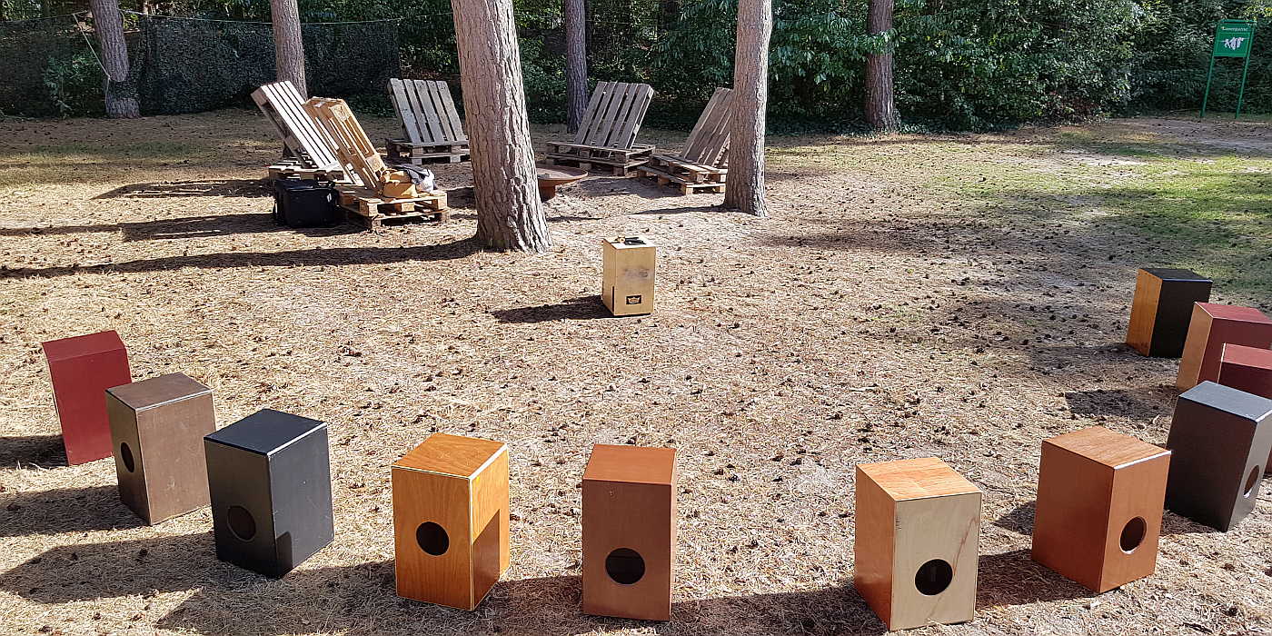 Locatie: De workshop Cajon spelen én bouwen kan ook in een gewoon lokaal/ruimte plaatsvinden, liefst op de begane grond.