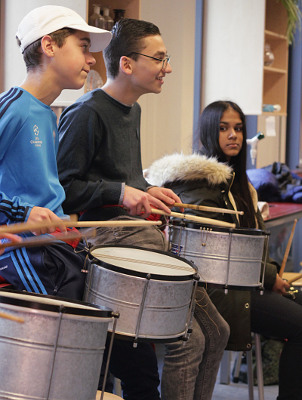 Zodra de groep het ritme beheerst, wordt het ritme uitgebreid of wisselen de jongeren van instrument. Voor men het weet verandert de workshopruimte in een swingende Braziliaanse bar.