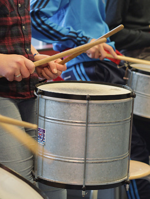 Met instrumenten zoals conga’s, surdo’s en timbales spelen we swingende Latijns-Amerikaanse ritmes zoals de samba.
