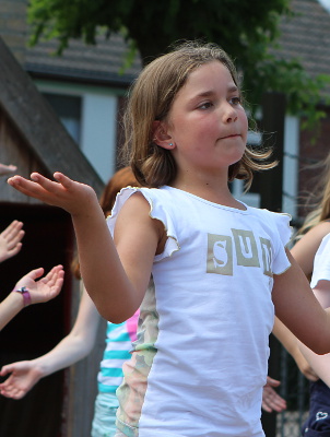 Met enkele speloefeningen wordt aandacht besteed aan ritme, ruimte en kracht, onmisbare ingrediënten voor showdance.