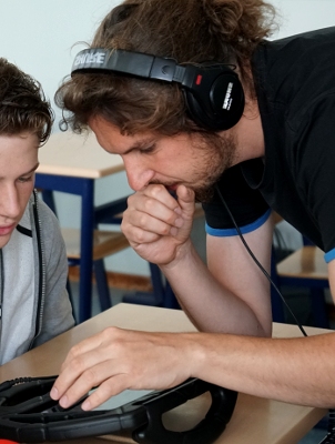 De workshopleider van maX Music komt met iPads en microfoons naar jullie locatie, en laat een groep kinderen ervaren hoe een pop/dance liedje kan worden opgebouwd door het ‘stapelen’ van diverse instrumenten en sporen.