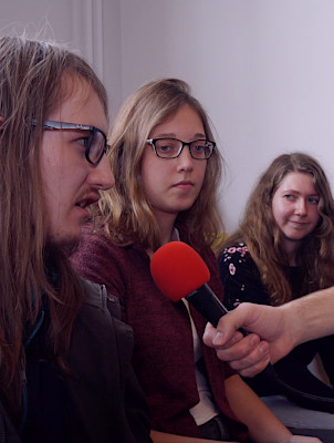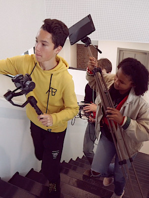 Vervolgens voeren we het gemaakte plan uit; we filmen sfeershots, en doen interviews. De deelnemende leerlingen interviewen ook zelf en worden betrokken bij de belichting en het opnemen van audio en video. De workshopleiders van maX Music zoeken hierbij continu naar een balans tussen professionele kwaliteit en inbreng van de deelnemers.