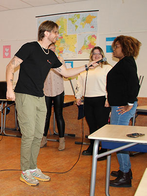 Na het stoeien met de eigen tekst is men natuurlijk benieuwd wat de anderen hebben gecreëerd. De workshopleider draait hip-hop beats waarop de deelnemers hun raps kunnen presenteren. Zo heb je jouw bekenden en collega’s nog nooit gezien!