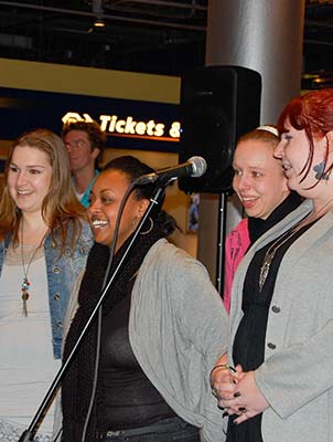 Iedereen deed enthousiast mee ondanks dat een aantal mensen wat minder met (rap) muziek hebben