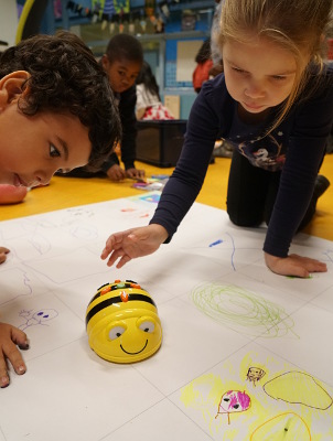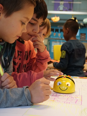 Jonge kinderen maken in deze workshop kennis met robotica door verschillende robotjes spelenderwijs te besturen.