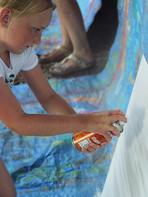Bij de street art workshop is het vooral belangrijk dat de deelnemers niet meer in vaste kaders denken van een ‘kunstwerk op een doek’.