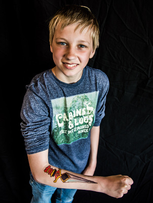 Sprekende symbolen op papier uitwerken en oefenen, en daarna op de huid tekenen met speciale stiften. Een mooie foto is het blijvende aandenken.