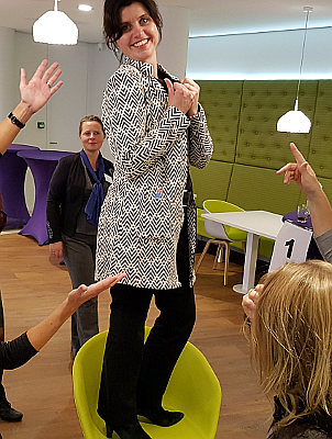 Een workshopleidster in de Team Training is Annet die al vele groepen trainde en vele groepssessies faciliteerde. Haar opleiding tot dramatherapeut gaf haar de professionaliteit in het gebruiken van theater als middel om met groepen mensen te werken aan hun persoonlijke ontwikkeling, kracht en zelfvertrouwen.