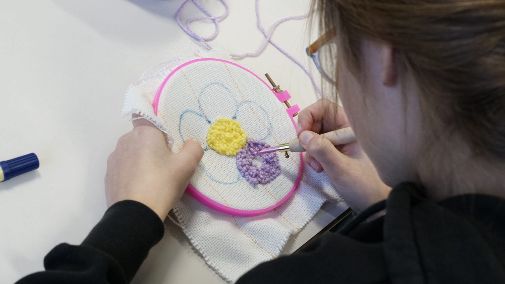 In de Tufting Workshop gaan jongeren aan de slag met een lekker analoge tuftnaald en creëren ze hun eigen ‘fluffy’ kunstwerk.