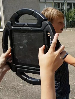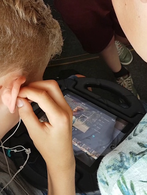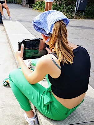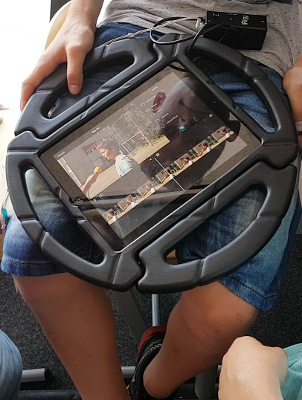 De deelnemers gaan nu in tweetallen aan de slag met een iPad en microfoon. Op de iPad kunnen de gefilmde beelden direct worden gemonteerd en ontstaat al snel een goed beeld van het eindresultaat en wat er nog nodig is.
