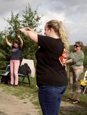 De deelnemers waren verrast maar de opdrachten waren duidelijk. Jane was een zeer enthousiaste workshop leidster. Wist goed hoe het bij een koor werkt en kon op een positieve manier haar workshop brengen. Elk koorlid deed enthousiast mee.